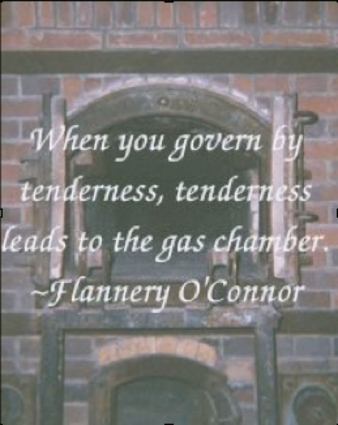 Liberalism run amok—political correctness—fulfills another literary prophecy. It was Flannery O'Connor who said "When you govern by tenderness, tenderness leads to the gas chamber." Were she speaking today, Miss O'Connor would probably have used the word "compassion" in place of "tenderness," because governing by "compassion" has certainly led to the abortion chamber. That abortion is an evil, or at the very least, not a good, is written on the human heart. But today, as in other times, the voice of the human heart—the voice of conscience—is profoundly muffled and "political correctness" has emerged in its place as a ersatz morality to drown out the muffled but nonetheless restless voice of conscience.